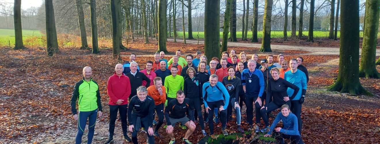 De opkomst was flink: met circa 50 lopers uit zo’n beetje alle loopgroepen was het een gezellige mix en gaf het mooi de gelegenheid de hoogtepunten van het afgelopen jaar nog eens door te nemen. Het tempo werd in toom gehouden en Coen cirkelde als een hond om de kudde zodat we niemand kwijtraakten.